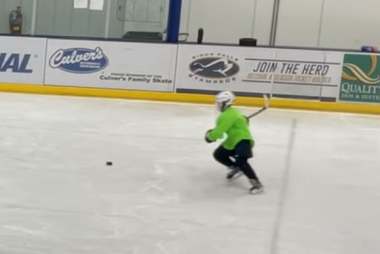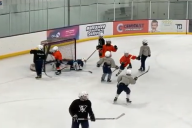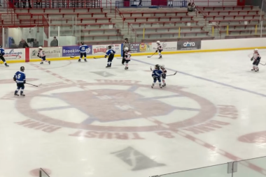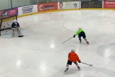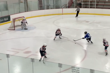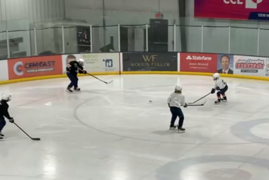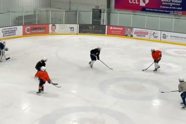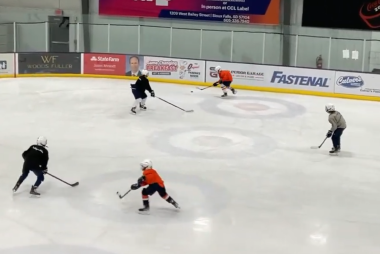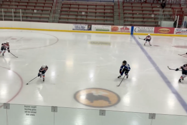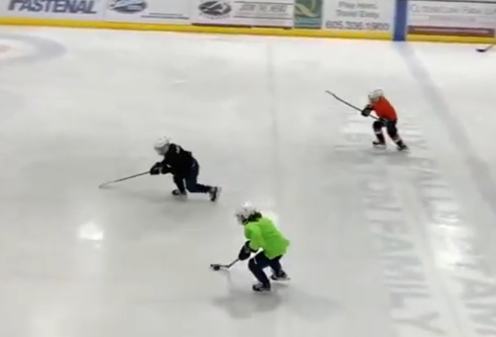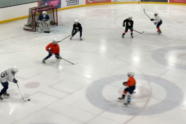 This version of the eagles drill is run fine, but its a great example at the top of the video where both skaters catch the pass on their backhands instead of opening up and calling for the pass at the top of the circle. They do open up later on in the drill and you…